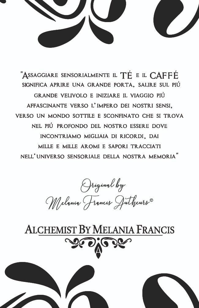 Melania Francis è un consulente specializzato nonché autore e Artigiano, giudice Esperto Qualificato e addestrato, barista certificato,Blender e Maestro Torrefattore specializzato, Esperto della Intera Filiera Agraria Agrobiodinamica, Analista Sensoriale Specializzato in Tea, Caffé, Spezie ed Erbe Officinali.